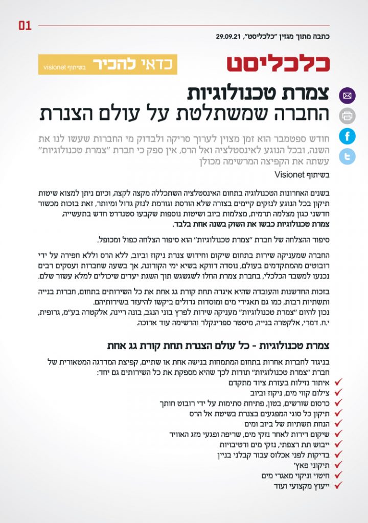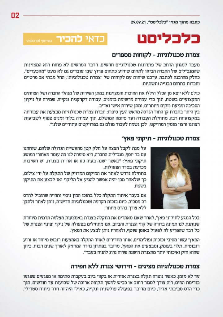 מחלקת חידושי צנרת בטכנולוגית אל הרס